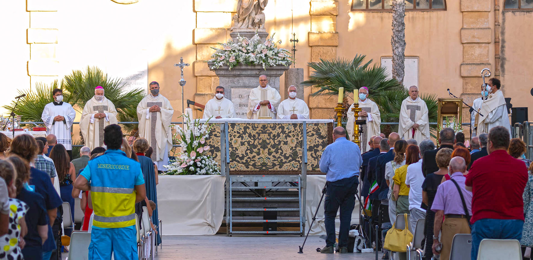 Quasi 800 fedeli a Mazara del Vallo hanno preso parte alla celebrazione eucaristica presieduta da monsignor Mogavero per il suo 50° anniversario dell’ordinazione presbiterale concelebrata dall’Arcivescovo di Palermo, monsignor Corrado Lorefice, il Vescovo di Trapani, monsignor Pietro Maria Fragnelli e i Vescovi emeriti monsignor Salvatore Di Cristina (Monreale) e Vincenzo Manzella (Cefalù). Alla celebrazione erano presenti, tra gli altri, i fratelli del Vescovo, Gioacchino e Santi, il Prefetto di Trapani Tommaso Ricciardi, i sindaci dei 13 comuni della Diocesi, rappresentanti delle Confraternite, fedeli comuni. A portare il saluto della comunità diocesana è stata Simona Amato, Segretaria del Consiglio pastorale. «Cinquant’anni sono una vita, una lunga sequenza di grazie e benedizioni, fecondati dal segno della croce.- queste le parole di Monsignor Mogavero-. Quel giorno (l’ordinazione avvenne domenica 12 luglio 1970 nella Cattedrale di Palermo, ndr), non potevo avere nessuna previsione del dopo, ma oggi riconosco che in tutto sono stato disponibile e fedele.-continua Mogavero-. E non lo dico per vantarmi ma per riconoscere che in me la grazia di Dio non è stata vana e mi ha sempre guidato e sorretto.” Al termine della celebrazione è intervenuto il Vicario generale don Vincenzo Greco che ha illustrato il dono-segno “Operatori di pace” fatto dal Vescovo. Il progetto vedrà la nascita di un Centro interreligioso per l’integrazione e la cittadinanza interculturale, allestito nell’ex Seminario vescovile, dove hanno sede Caritas diocesana e Fondazione “San Vito Onlus”. Sarà rivolto ai giovani europei e a quelli provenienti dall’Africa, continente di giovani, sia maghrebina che subsahariana, per così avviare processi interculturali di scambi e di riflessioni, sociali, politiche, economiche e religiose.