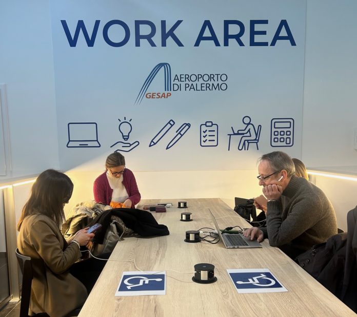 L’aeroporto internazionale “Falcone Borsellino” di Palermo continua il suo percorso di crescita come infrastruttura strategica per la mobilità e lo sviluppo economico del territorio. Sono operative da oggi le nuove work area multifunzionali, situate nella zona partenze al terzo livello dell’aerostazione, passati i controlli di sicurezza, nei pressi del gate A18 e prima della zona controlli passaporti. Le due aree sono dotate complessivamente di 20 postazioni di lavoro individuali, di cui due accessibili alle persone con disabilità e sono pensate per garantire comfort, funzionalità e connettività ai passeggeri in attesa dell’imbarco. Ogni postazione è attrezzata con prese elettriche e Usb, punti di ricarica per dispositivi mobili, sedute ergonomiche, illuminazione Led dedicata e connessione wi-fi potenziata.