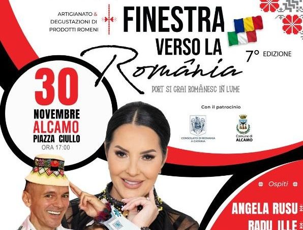 Giunge alla settima edizione l’evento culturale “Finestra verso la Romania”, organizzato dall’Associazione Decebal & Traian, con il patrocinio del Comune di Alcamo. L’edizione di quest’anno si svolgerà domenica 30 novembre, dalle 17, in piazza Ciullo. Tanti gli ospiti presenti, tra cui artisti della musica popolare romena e un gruppo di venti danzatori di balli folcloristici. Ad aprire l’evento i fratelli Barone, che canteranno l’inno nazionale italiano e quello romeno. Presso il Castello dei Conti di Modica verrà allestito uno spazio espositivo per la mostra di oggetti tradizionali romeni. Negli stand, inoltre, verrà proposta una degustazione dei prodotti gastronomici tipici della Romania.