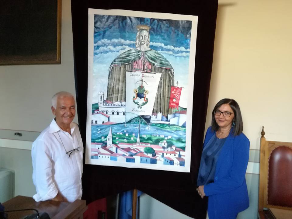 Il pittore alcamese Enzo Di Franco è stato l’ospite d’onore a Sansepolcro, provincia di Arezzo, dove domenica prossima si svolge il Palio della Balestra. Di Franco ha dipinto un grande quadro dove una gigantografia della Madonna della Misericordia, di Piero della Francesca protegge con il suo manto le città di San Sepolcro e Gubbio che si contenderanno il Palio domenica prossima. Il Palio della Balestra a Sansepolcro si celebra ininterrottamente dalla metà del XV secolo, ma fonti storiche attendibili affermano che tale disputa avveniva anche antecedentemente, difatti si ritrovano antichi scritti che parlano del Palio solito. Nel 1453 Piero della Francesca ritorna nella sua città natale a prendere in possesso una delle 160 balestre di proprietà comunale, atte alla difesa della città e quindi per gareggiare il Palio. I balestrieri (liberi cittadini) per mantenersi in allenamento e quindi pronti alla difesa della città (come riserva militare), si allenavano costantemente nell’arte del balestrare, gareggiando il Palio. Al vincitore andava in premio un pezzo di lana rosso (pallium). Nel 1920 fu nominato presidente onorario della società Balestrieri di Sansepolcro Umberto II di Savoia. Nel 2011 l’astronauta Roberto Vittori, residente a Sansepolcro, ha portato nell’ultima missione dello Space Shuttle Endeavour STS-134 una piccola balestra creata da artigiani biturgensi, finemente decorata denominata Petra de Burgo, nome ispirato a Piero della Francesca (che era solito firmarsi “Petro de Burgo”), in omaggio alla storica manifestazione della sua città. Per la città di Alcamo è un grande onore avere un artista come Enzo Di Franco, che nella zona ha tenuto mostre di successo, invitato a disegnare lo storico Palio.