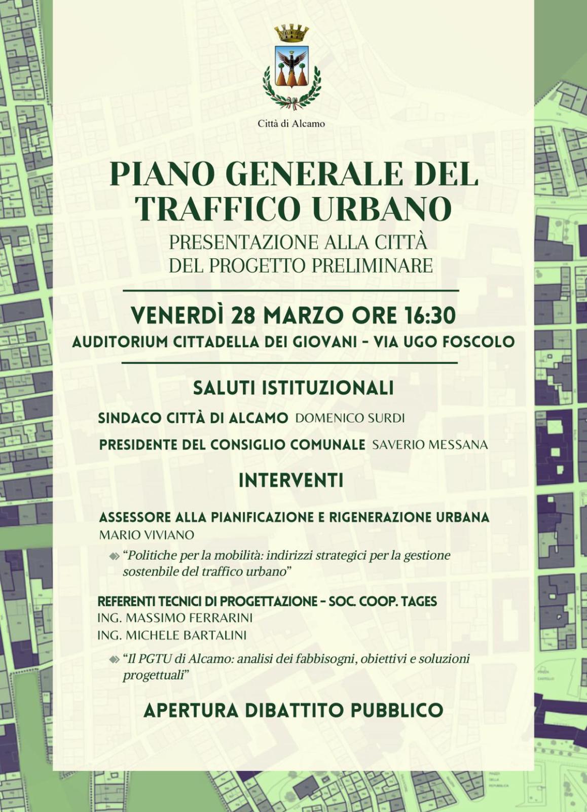 Alcamo e mobilità sostenibile, venerdì 28 marzo, alle 16.30, alla Cittadella dei Giovani sarà presentata alla cittadinanza la proposta preliminare del Piano Generale del Traffico Urbano. L’evento prevede un dibattito pubblico per raccogliere osservazioni e proposte. “Il confronto con i cittadini è fondamentale per individuare le esigenze della collettività e migliorare la gestione del traffico urbano”, ha dichiarato l’assessore alla pianificazione urbanistica Mario Viviano.