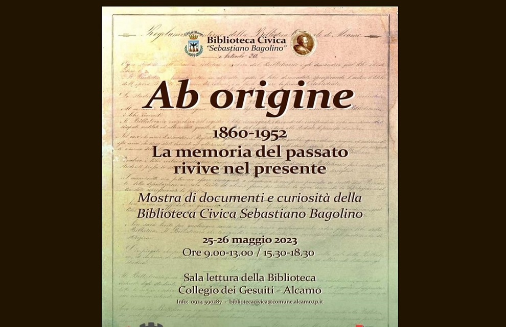 “Ab origine, 1860-1952. La memoria del passato rivive nel presente”. E’ il tema della mostra di documenti e curiosità in corso alla biblioteca civica “Sebastiano Bagolino” presso la sala di lettura. La mostra organizzata da Rosa Maria Artale, responsabile della biblioteca, abbraccia un periodo di 92 anni con esposizione di libri che nei vari periodi e nel trascorrere degli anni raccontano un percorso iniziato nel 1877 con l’approvazione del regolamento dell’allora consiglio comunale.