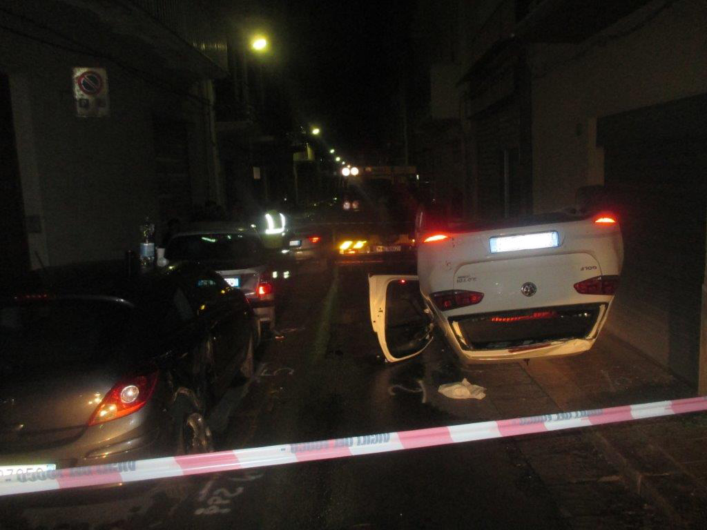Un vero e proprio proiettile che si lancia a tutta velocità andandosi a schiantare contro alcune auto posteggiate e finendo la sua corsa sul portoncino di un’abitazione. Il tutto sotto gli occhi impauriti dei tantissimi residenti della zona che sono stati letteralmente svegliati dal boato degli schianti. Paura nella notte appena trascorsa in una delle principali strade del centro storico della città, la via Vittorio Veneto, arteria a senso unico che collega i due assi viari del viale Europa e del centralissimo corso VI Aprile. Una Golf, con due persone a bordo, per cause che ancora sono in corso di accertamento, poco prima della mezzanotte si è addirittura ribaltata dopo aver carambolato come fosse una pallina da flipper su alcuni veicoli posteggiati e sul prospetto di una casa. Come sia potuto accadere in una strada a senso unico e per di più molto stretta come la via Vittorio Veneto ancora in tanti se lo chiedono. Illeso il conducente mentre il passeggero ha subito lievi ferite. Trasportato all’ospedale “San Vito e Santo Spirito” di Alcamo con l’ambulanza ha riportato lesioni giudicate guaribili in 5 giorni, dunque lievi feriti, ematomi ed escoriazioni. Una vera fortuna considerata la dinamica di quanto accaduto, che comunque è ancora al vaglio dei caschi bianchi. La cosa certa è che l’incidente è stato autonomo. Tra le ipotesi delle cause di quanto accaduto c’è l’alta velocità, aspetto che comunque gli agenti stanno cercando di verificare attraverso i rilievi fatti. Sono ancora in corso accertamenti sul conducente della Golf, per verificare se avesse assunto sostanze alcoliche o stupefacenti. I vigili urbani stanno anche cercando di verificare la presenza in zona di testimoni per provare a ricostruire meglio quanto accaduto. Questa carambola intanto è costata dei danni consistenti a due auto che erano posteggiate sul lato destro della strada, letteralmente squarciate sulla fiancata, e al portone di un’abitazione al piano terra che allo stesso modo è stato in parte divelto.