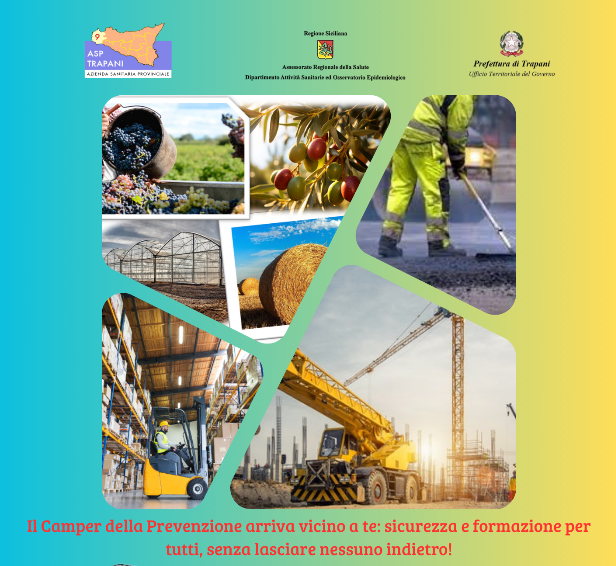 Un camper itinerante per portare informazione, formazione e assistenza direttamente nei luoghi di lavoro. È l’iniziativa lanciata dal Dipartimento di Prevenzione dell’Asp Trapani, che da oggi al 4 dicembre farà tappa in aziende agricole, cantieri edili, mercati, centri civici e scuole professionali. A bordo, esperti di prevenzione e responsabili della sicurezza proporranno mini-workshop su ergonomia, corretto utilizzo dei dispositivi di protezione, gestione dello stress e rischi professionali, oltre alla distribuzione di materiali informativi e linee guida operative. Quattro le giornate previste: martedì 18 novembre tappe a Campobello di Mazara, Castelvetrano e Mazara; giovedì 20 novembre a Poggioreale, Salaparuta, Partanna e Santa Ninfa; martedì 25 novembre a Marsala e Petrosino; martedì 2 dicembre a Salemi, Vita e Gibellina.