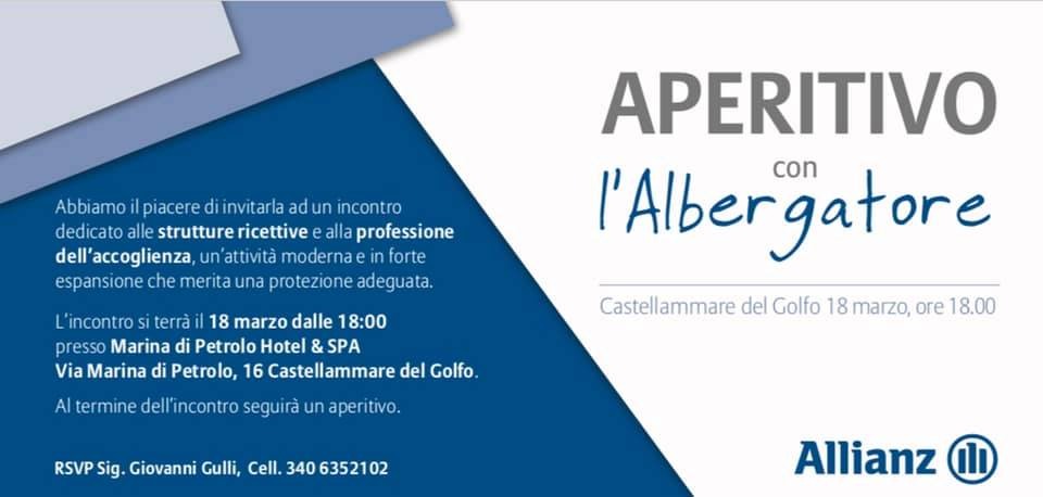 Possono partecipare tutti i titolari di B&B, alberghi e case vacanza. “Un progetto che Allianz sta portando avanti da alcuni mesi con tutte le categorie ricettive presenti nel nostro territorio per sensibilizzare i titolari e i gestori di Alberghi, B&B, Case Vacanze e Affittacamere sugli obblighi normativi che bisogna osservare per assicurare ai propri clienti un soggiorno sereno e tutelare i propri collaboratori nel lavoro quotidiano. L’obiettivo è di mettere in atto una serie scelte responsabili che proteggano in modo adeguato le strutture ricettive da richieste di risarcimento che potrebbero mettere in ginocchio l’attività ” spiega il responsabile del progetto Giovanni Gulli. Al termine dell’incontro seguirà un aperitivo con degustazione dei vini Magaddino. Per maggiori informazioni il referente è Giovanni Gulli 340-6352102
