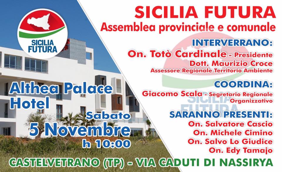 Tutto è pronto per la celebrazione del primo congresso provinciale di Sicilia futura, un movimento che rappresenta un’anima del Partito democratico che si attesta sulle posizioni del premier Matteo Renzi. Il congresso si svolgerà domani sabato a partire dalle ore 10 presso l’Hotel Althea di Castelvetrano dove saranno eletti i quadri dirigenziali della provincia di Trapani. Uno degli esponenti di spicco di Sicilia futura è l’ex sindaco di Alcamo Giacomo Scala. Domani a Castelvetrano prevista la presenza di cinque deputati regionali, dell’assessore Maurizio Croce, più varie autorità. Porteranno il loro saluto delegazioni di altri partiti. Al centro del tavolo siederà Totò Cardinale, presidente regionale di Sicilia Futura. Intanto sono già oltre trenta i consiglieri di vari comuni della provincia di Trapani, che hanno aderito a Sicilia futura, più numerosi assessori in carica. Un vero e proprio boom per Sicilia futura, che dopo il congresso provinciale, rilancerà la sua azione politica nei Comuni del Trapanese con particolare attenzione anche a Alcamo, dove recentemente è stato eletto il segretario comunale. Si tratta del giovane imprenditore Massimo Melodia. Sicilia futura è inoltre pronta a varare iniziative politiche ad Alcamo con spirito non polemico ma costruttivo in un momento in cui sono poche le iniziative dell’opposizione in consiglio comunale in una città dove dopo quattro mesi dalle comunali ancora riesce difficile decifrare il progetto politico amministrativo per rilanciare Alcamo. No agli spot dice Sicilia futura, ma puntare alla sostanza delle cose. Un movimento quello di Sicilia futura, deciso più che mai, a schierare una squadra molto forte alle prossime elezioni regionali. Durante i lavori congressuali sarà ricordato l’onorevole Enzo Culicchia, deceduto nei giorni scorsi. Al congresso provinciale si parlerà del rilancio del territorio trapanese, ricco di tante potenzialità e quindi capace di essere un importante vettore economico e quindi occupazionale e si procederà all’elezione del segretario provinciale e del direttivo.