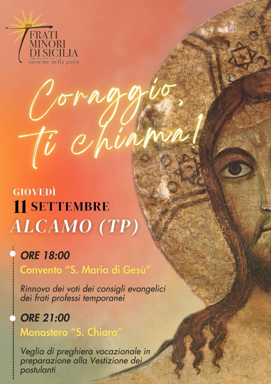Ad Alcamo la Pastorale Giovanile e Vocazionale dei Frati Minori di Sicilia organizza due momenti dedicati ai giovani. Tre postulanti inizieranno l’anno di noviziato dopo il rito di iniziazione: Sergio di Erice, Dario di Palermo e Samuele della provincia di Messina. Il percorso si svolge in comunità, con preghiera, studio e formazione guidata dal Ministro Provinciale fra Antonino Catalfamo.