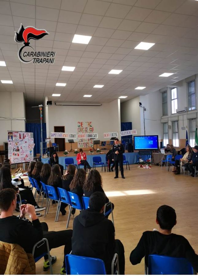 Altri incontri formativi sono stati tenuti dai militari dell’arma presso gli Istituti “G.G. Adria – G.P. Ballatore” di Mazara del Vallo, “G. Garibaldi e G. Paolo II” di Salemi: tra i temi affrontanti, il bullismo, il cyber-bullismo e la violenza di genere.