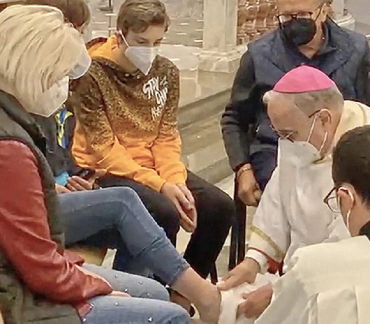 Durante il rito religioso, celebrato nella Cattedrale, il vescovo di Mazara del Vallo, Domenico Mogavero, ha voluto lavare i piedi a dodici cittadini di nazionalità ucraina. Tra questi quattro erano profughi appena arrivati arrivati da Odessa ed accolti da una famiglia mazarese. Gli altri otto sono invece residenti da anni nel territorio mazarese.
