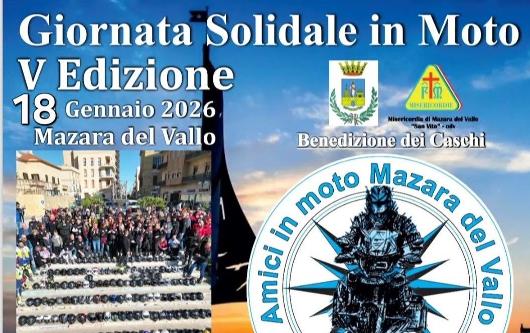 Torna a Mazara del Vallo la “Giornata Solidale in Moto”, giunta alla sua quinta edizione. L’appuntamento è per domenica 18 gennaio, dalle 8 alle 16, sul lungomare Hopps/San Vito, nel tratto compreso tra i civici 27 e 55. Il moto raduno ha una forte finalità solidale: raccogliere beni di prima necessità destinati a bambini e famiglie in difficoltà. Il materiale raccolto sarà distribuito dalla Misericordia attraverso il Banco alimentare e il progetto “Nuova Povertà”. Durante la giornata l’area interessata ospiterà gazebo e pedane per momenti di intrattenimento e musica. Alle ore 12 è previsto uno dei momenti più sentiti della manifestazione, la benedizione dei caschi, simbolo di condivisione e attenzione alla sicurezza.