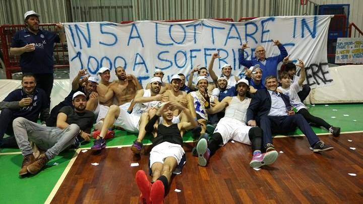Ranalli, guerriero indomabile, si trova un fallo a 17 secondi dal termine e trasforma, con freddezza glaciale, i due liberi. Castiglione chiama time-out e ottiene quindi la rimessa in attacco. Alcamo non molla di un centimetro, Adrano non riesce a rimettere e incappa nell’infrazione di 5 secondi. Ma non finisce qui perché i locali confezionano la più grossa e pericolosa delle frittate. Rimessa, palla a Genovese che la butta via in malo modo. Si avventa Lo Faro che sbatte con un avversario ma va ugualmente al tiro, sbagliandolo; lotta greco-romana a rimbalzo, tre cestisti si tuffano a pesce sul parquet; palla ancora agli adraniti e in qualche modo arriva nuovamente a Lo Faro. La sua “bomba” è lunga e, al “PalaTreSanti”, scoppia la festa in un tripudio indescrivibile.