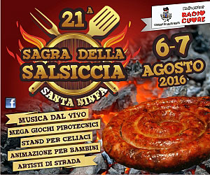 Ritorna a Santa Ninfa una delle feste più attese della Valle del Belìce: sabato 6 e domenica 7 agosto l’appuntamento estivo, diventato oramai consueto, con la 21° edizione della Sagra della Salsiccia. Inserita a pieno titolo nei circuiti degli amanti della buona tavola, la manifestazione porta ogni anno migliaia di visitatori nella piccola cittadina che ha saputo far diventare polo d’attrazione una pietanza semplice e gustosissima, apprezzata da adulti e bambini. L’evento gastronomico-culturale è organizzato dal Comune, con il patrocinio dell’Unione dei Comuni del Belice, della Regione e la preziosa collaborazione dei commercianti locali. Il popolarissimo insaccato di carne, tipico di molte regioni italiane con una miriade di varianti e diffuso in tutto il mondo, durante la due-giorni si potrà gustare in molteplici versioni: cotto sulla brace, con cipolla in agrodolce, al ragù, panato, con le busiate, nei panini, sulla pizza ed altro ancora. Tutto questo in ben 45 stand enogastronomici a disposizione dei visitatori. Ad animare la manifestazione, lungo l’asse viario che va da viale Pio La Torre a viale Piersanti Mattarella, ci saranno spettacoli musicali, di magia, esibizioni di artisti di strada, trampolieri, danzatori e giocolieri. Per i più piccoli, animazione e gonfiabili. L’iniziativa prevede inoltre visite guidate al museo Nino Cordio, al museo dell’Immigrazione e al Centro Naturalistico, un nuovo museo che si è aperto nel Castello di Rampinzeri, gestito dal Comune assieme a Legambiente, dove si potranno visionare tutte le specificità delle grotte carsiche santaninfesi, sotto l’aspetto morfologico e naturalistico. Domenica a mezzanotte il gran finale con i giochi pirotecnici.