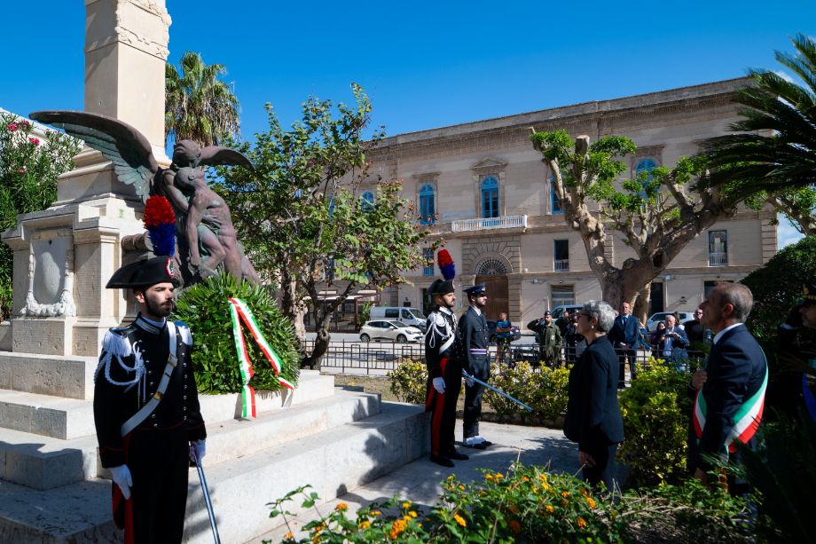 Trapani ha celebrato ieri mattina il “Giorno dell’Unità Nazionale e la Giornata delle Forze Armate” con una cerimonia al Monumento ai Caduti di Piazza Vittorio Veneto. Presenti il prefetto Daniela Lupo, le autorità civili, militari e religiose, studenti e cittadini. Dopo l’alzabandiera, la deposizione della corona e la benedizione del vescovo Pietro Maria Fragnelli, è stato letto il messaggio del Presidente della Repubblica Sergio Mattarella. Consegnata la bandiera tricolore all’Istituto Comprensivo di Misiliscemi, intitolato all’agente scelto Giuseppe Montalto, vittima di mafia. Conferita anche la Medaglia d’Oro al Valor Militare alla memoria dell’appuntato Giuseppe Cianino, caduto nel 1945. La cerimonia, accompagnata dalla Fanfara del VI Reggimento Bersaglieri, è proseguita con la visita alla mostra di uniformi storiche allestita in Prefettura.